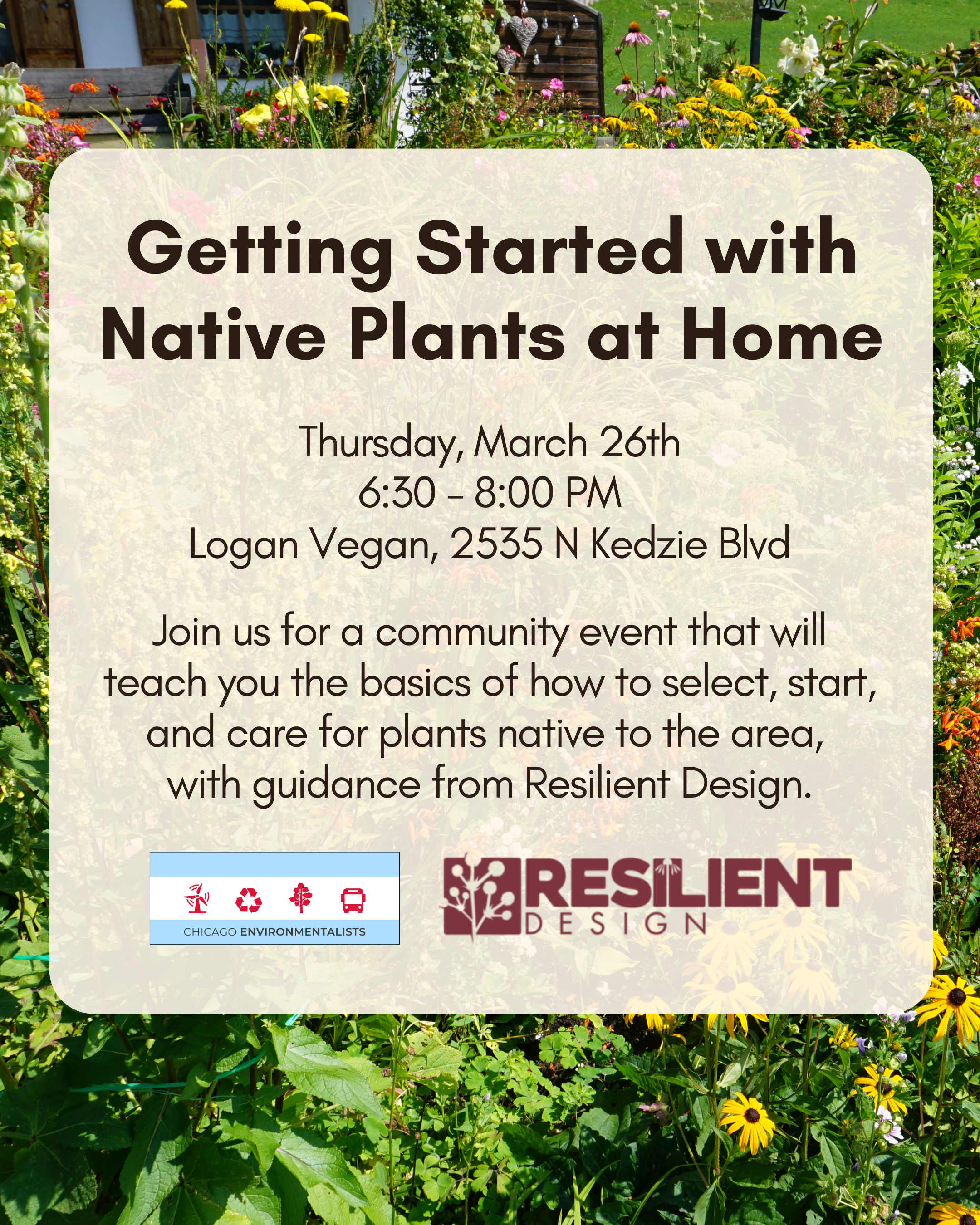 If so, this is the event for you! We will be featuring a presentation from Resilient Design, an eco-friendly horticulture and landscaping service. The event will also have a community meet and greet portion where you can check in and buy any food/beverage you'd like from Logan Vegan.